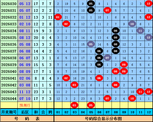 后区第二位分析分析:在第045期历史同期开奖中,该位号码升重降次数比为10:2:6,出现范围在04-12区间,最近5年后区第二位分析号码升重降次数比为2:2:1,出现范围在05-09,对比最近几年同期号码,今年第045期看好后区第二位分析号码逐渐下降,关注号码05。